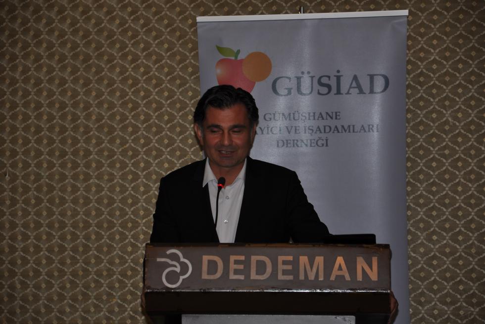 ‘GÜSİAD bugün sizlerden aldığı destek ve güçle bugünlere gelmiştir. Derneğin amacı içte ve dıştı sınai, sosyo ekonomik ve eğitim kültür düzeylerinin gelimim sağlamak amacıyla teknolojik sermayenin fikir alışverişini temin ederek daha ileriye ulaşmalarına yardımcı olmaktır. 1994’te çalışmaklara başlayan ve iki yıl süren çalışmaların ardından 196’dan bugüne 20 yıl faaliyet gösteren bir derneğiz Bu yirmi yıl içerisinde pek çok projeye de imza attık ve geliştirme içerisinde olduk, halende bu çalışmalarımız deva etmektedir.’