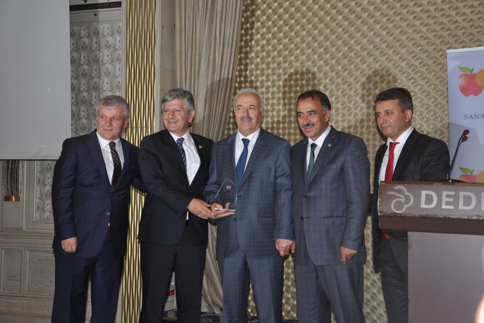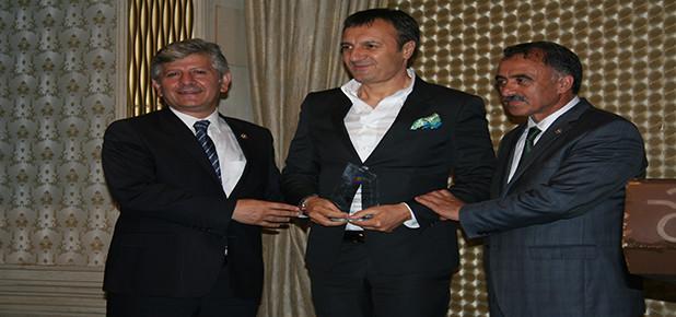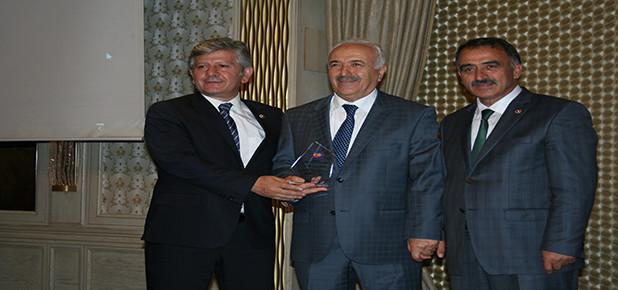 Genel Başkan Prof. Dr. Aydın konuşmasının ardından dernek adına Esenyurt’ta yapımı devam eden çok amaçlı hizmet binasına üstün katkı vererek hizmetlerde bulunan aynı zamanda derneğin başkan vekili İşadamı Muammer Beyaz’a özel bir ödül takdim etmek istediklerini söyledi. Ödül Milletvekilleri Mustafa Canlı, Kemalettin Aydın tarafından Beyaz’a takdim edildi.