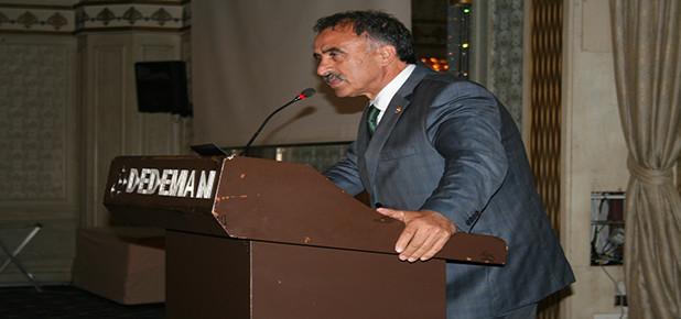Gümüşhane Milletvekili Kemalettin Aydın’da konuşmasında 7 haziran seçimleri sonrası Türkiye’nin şekillenen siyasi tablosuna, bu tablonun kendisinde yarattığı şaşkınlığa ve bu tablonun siyasi istikrarın sürdürülmesi noktasında tüm siyasi partilere düşen sorumlulukları dile getirdi. Aydın konuşmasında, 2002 yılında iktidara gelen AK Parti öncesi Türk ekonomisinin içerisinde bulunduğu sıkıntılardan söz ederken, partisinin 2002 yılında iktidar olduktan sonra 7 haziran seçimlerine kadar ülkede seyreden ekonomik ve güven istikrarına dikkat çekti ancak 7 haziran sonrası herkesin kafasında ne olacak sorusunun belirginleştiği, tartışıldığı görüşünün oluştuğunu belirtti. Aydın, ‘Bu noktada işadamlarını biraz sıkıntılı ve kızgın görüyorum. Buraya birazcık tedirgin geldim’ ifadelerine yer verdi. Aydın, 2015 7 haziran sonrası ortaya çıkan dört meclisli parlemontadan söz ederken şunları kaydetti: ‘Türkiye’nin ekonomik krizlerinin olduğu günlerde, gecede 7500 faizlerin olduğu bir yerde kolay kolay iktidar milletvekilleri işadamlarının toplantılarına gidemezken, sekiz yıl oldukça huzurlu bir şekilde iktidar milletvekili olarak aranıza geldim. Ama bu alam buraya biraz tedirgin geldim. Çünkü işadamlarının biraz kızgın olduğunu hissediyorum, tek başına iktidara giderken yarınını biz görürken ne oldu da 7 haziran’dan sonra bu süreç koalisyona doğru giden süreç bizi ürkütüyor noktasına geldi. İnşallah meclisin iradesiyle seçilen dört siyasi parti Türkiye’nin kalkınmasını ve hızla yükselişini durduracak bir süreci yaşatmazlar. Yüce Rabbimden duam, TBMM’deki siyasi partilerin Türkiye’nin geleceği için planlı projelere, çalışma süresi belli bir siyasi iktidar oluşturarak işadamlarını ve Türkiye’deki diğer katmanlarının planını aksamaya uğratmadan devam etmesidir. Çünkü eğer bir ülkenin bir uçağının kalkması için motoru ne kadar kıymeti ise bir hedefe ulaşması içinde işadamlarının döndürdüğü motor çarkı ve dişlileri o kadar önemlidir biz eğitim sağlığı ulaştırmayı, özeleştirmeyi önemserken, işadamlarını kendi kurguladıkları planları aksamadan an ve an sürdürmelerini önemsiyoruz, Türkiye işadamları olmadan ve Türkiye kendisini yükseltecek kadrolar olmadan hiçbir yere noktaya varamaz. İşte sizlerden gurur duymamın nedeni, Türkiye’nin motor gücü olan işadamlarının içerisinde yirmi yıl önce kurulmuş olan GÜSİAD’ın büyük bir yer amış olmasıdır. O nedenle Gümüşhaneli o günü kurucularının tarih okumuyoruz tarih yazıyoruz diyerek bu kitabı yazmış olmalarını da yürekten tebrik ediyorum. Gümüşhaneliler tarihin her yerinde tarih yazılmasına katkı sağlamıştır. Anafarta’da Çanakkale’de de, Sarıkamış’ta da. 2000’li yıllarda da Gümüşhaneli işadamları tarafından Türk ekonomisine altın harflerle başarı yazılmasından dolayı onur duyuyorum gurur duyuyorum ve onların TBMM’deki temsilcileri olmaktan dolayı da son derece mutluyum. Sevgili geçlere ve Türkiye’de sayıları 800 bine ulaşan çok değerli Gümüşhaneliler olmak üzere, bu çok değerli büyüklerini, ağabeylerinizi örnek alarak Türkiye ekonomisine, Gümüşhane ekonomisine katkı koymalarını diliyor, sevgi ve saygılarımı sunuyorum’ dedi